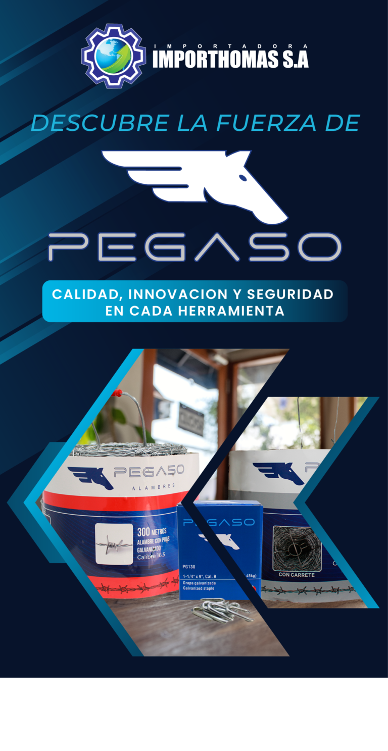 Importhomas consciente de los desafíos que enfrentan los usuarios, decidieron crear “PEGASO” diseñando cada producto con un distintivo especial. Por ejemplo, su alambre de púas contiene un carrete innovador que facilita su manejo y evita lesiones, los clavos y grapas Pegaso están presentados en cajas de 1 libra para evitar perdidas y facilitar el manejo del producto, con estos ejemplos Pegaso demuestra su dedicación a hacer la vida del cliente más fácil y segura.